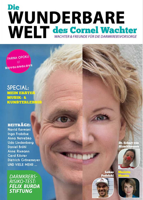 Eine halbe Million Mal will das Magazin „Die wunderbare Welt des Cornel Wachter“ mit dem halben Coverboy Guido Cantz und dem halben Covergirl Mariele Millowitsch für die Darmkrebs-Vorsorge werben.