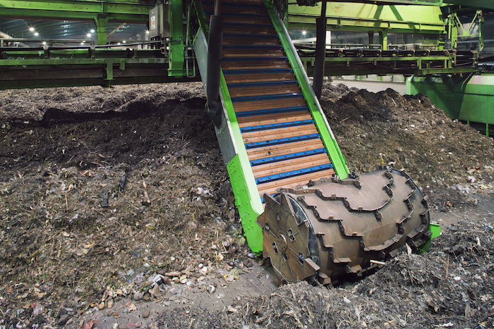Grobe Abfälle werden mit Walzen zerkleinert.