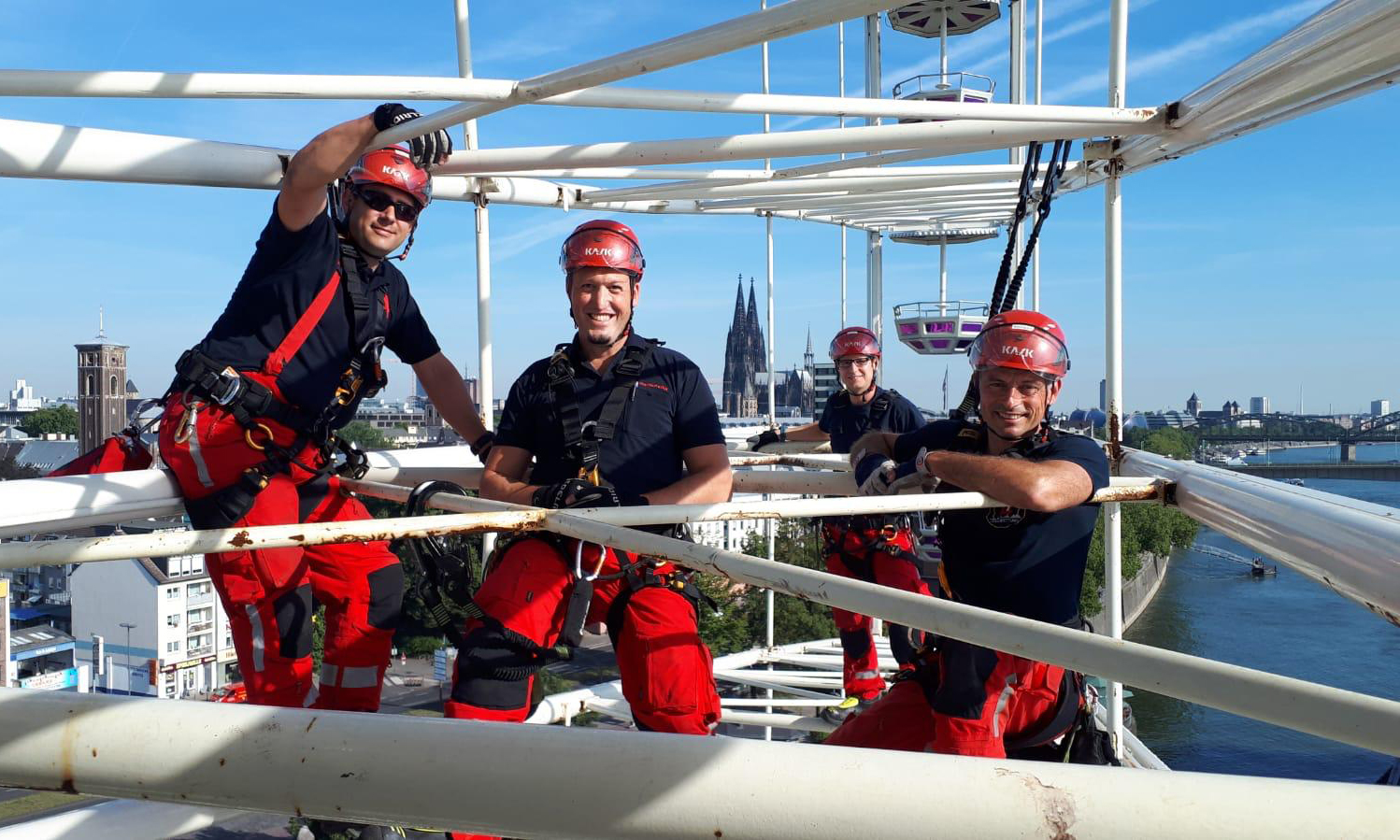 Das Einsatzgebiet endet nicht an der Kölner Stadtgrenze, sondern umfasst den gesamten Regierungsbezirk Köln und geht zuweilen sogar darüber hinaus. „Weil es in Köln die Rheinseilbahn gibt und eine Reihe von Hochhäusern, hat die Stadt 1995 ein eigenes Höhenrettungsteam gegründet“, erklärt Kelzenberg.