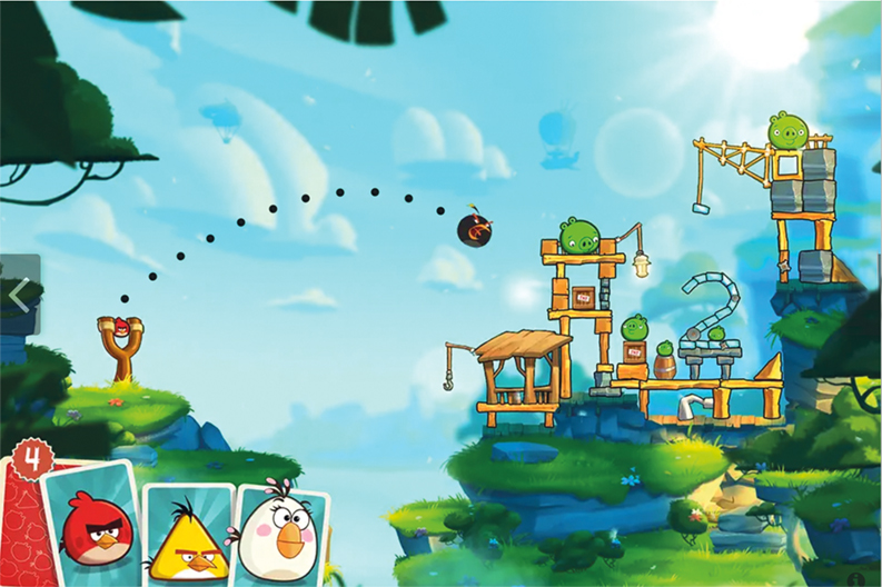 ... Spiele, bei denen in unbekannten Welten Punkte erzielt werden müssen (hier Angry Birds).