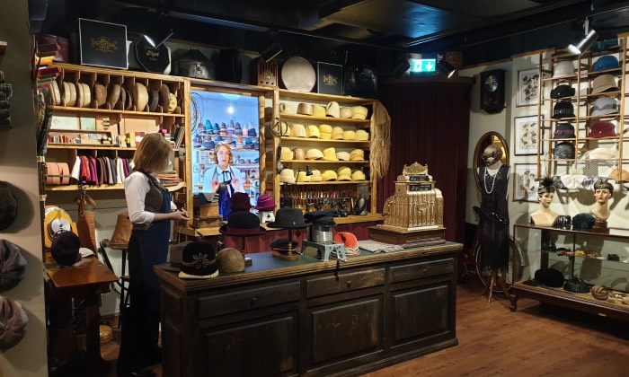 An der Ausstattung des nostalgischen Hutladens von Hutmacherin Tessa war das Kölner Traditionsunternehmen Diefenthal mit Rat und Tat beteiligt.Foto: Martina Dammrat