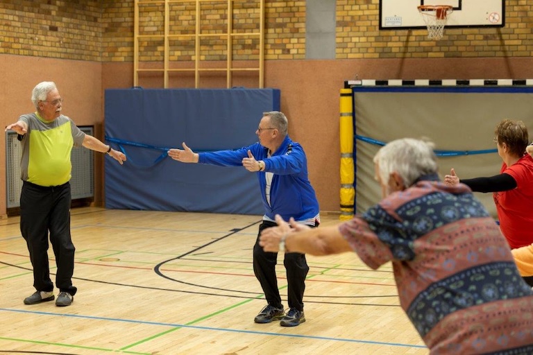 Der 65-jährige Rentner hat erst vor Kurzem seine Ausbildung als Übungsleiter abgeschlossen. „Mit Rentenbeginn bin ich in den Sportverein eingetreten“, sagt er. „Die drei Jahre davor saß ich nur im Homeoffice, habe zugenommen und bin unbeweglich geworden.“ Seitdem steht dreimal die Woche Vereinssport auf seinem Programm: von der Seniorengruppe über Fitnesstraining bis hin zum Kraft-Ausdauer-Kurs. Das Training zahlt sich nicht nur für seine Teilnehmer aus: Auch er selbst ist wieder fit und beweglich.