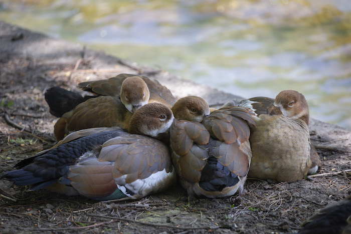 Die Färbung der Nilgänse erinnert an Enten. „Sie sind bunter und etwas kleiner als die Kanadagänse und sie sind meist in Familienverbänden unterwegs, nicht in so großen Gruppen wie die Kanadagänse“, erklärt Toedt. Beide Wildgansarten haben eins gemeinsam: Sie sind bei uns ursprünglich nicht heimisch. „Sie sind im Laufe der Jahre aus Zoos und Parks ausgebüxt und haben hier in Köln gute Bedingungen vorgefunden. Deshalb bleiben sie nun ganzjährig“, weiß der Vogelfachmann.