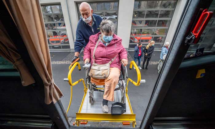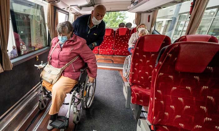 Busreisen bieten Geselligkeit und Mobilität mit Rollstuhl. Foto: Ben Horn