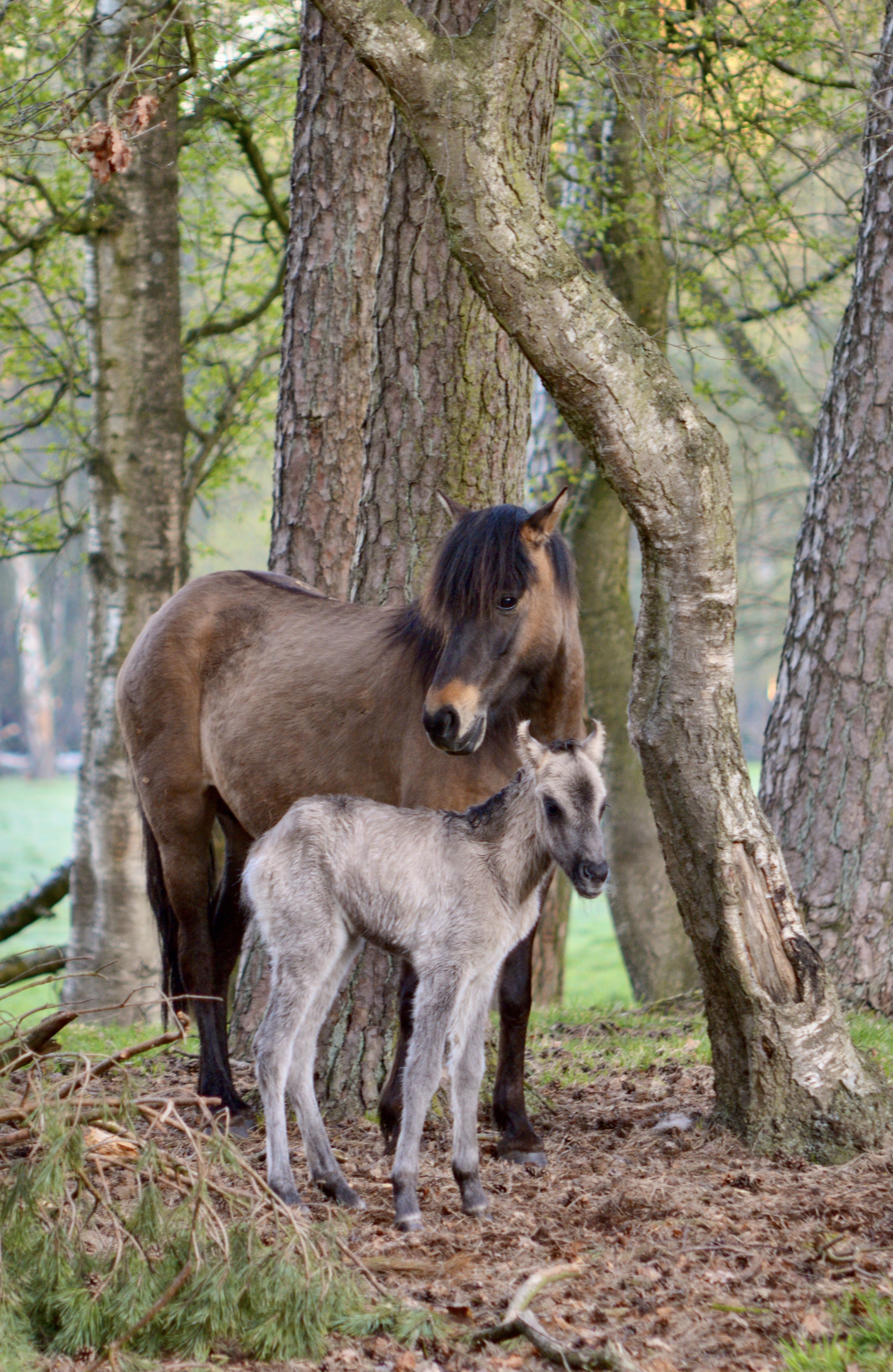 Diese Pferde haben die perfekte Tarnung: Ihr graues oder bräunliches Fell macht sie im Wald ziemlich unauffällig. Besonders in der Morgendämmerung. Zwischen den Buchen, Eichen und Birken kann man die kleineren Grüppchen kaum sehen und hören. Nur ab und zu wiehert ein Fohlen in höchster Tonlage nach der Mutter.