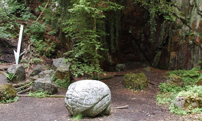 Direkt gegenüber dem Museum beginnt der knapp zwei Kilometer lange Kunstweg „Menschenspuren“. Er ist als Runde mit elf Skulpturen moderner Künstlerinnen und Künstler angelegt. Ein dynamisch in die Erde gespießter Metallpfeil und ein steinernes überdimensionales Gehirn in einem ehemaligen Steinbruch markieren seinen Beginn.
