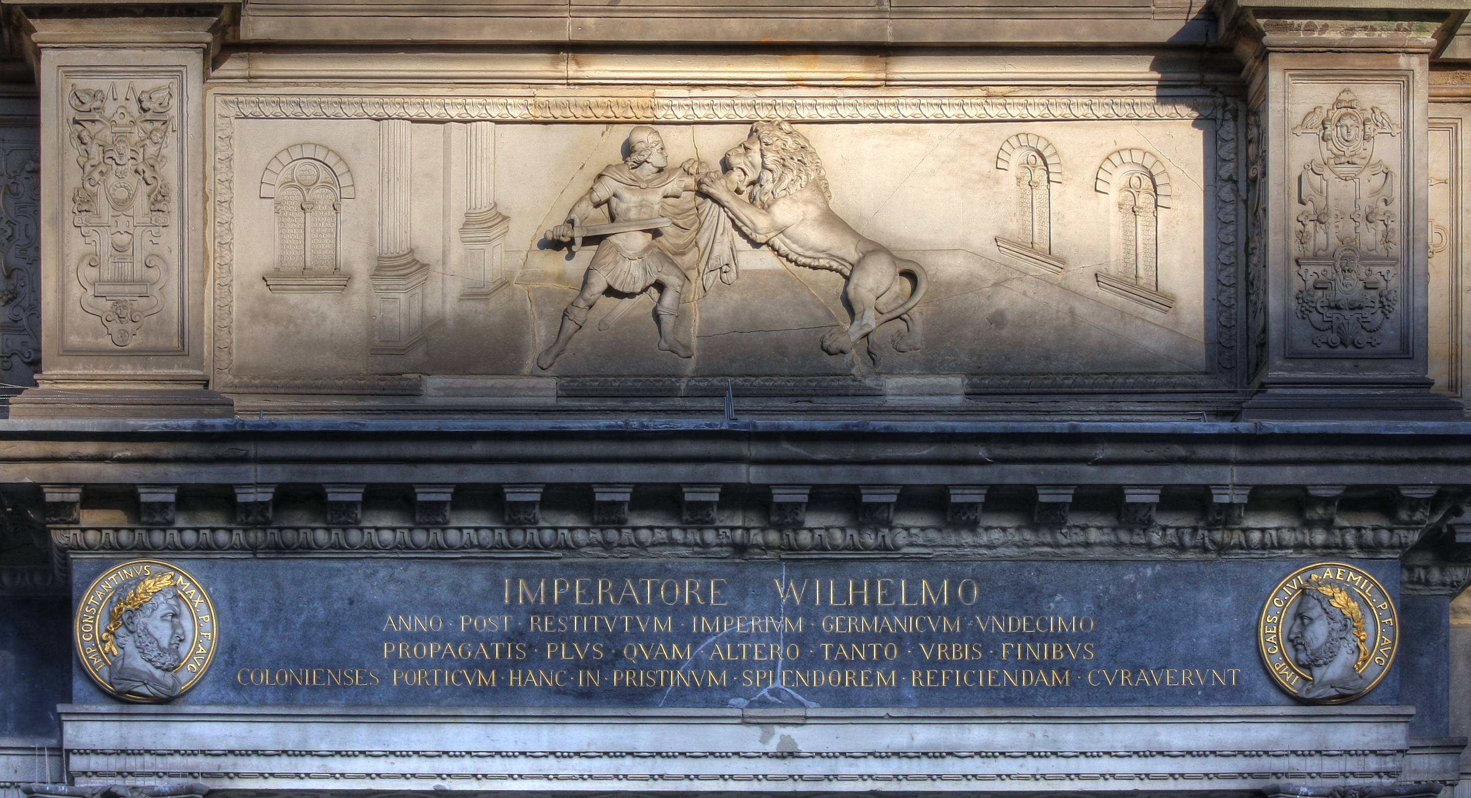Löwenkampf des Hermann Gryn am Kölner Rathaus. Mittleres Relief. Foto: Raimond Spekking_CC BY-SA 3.0