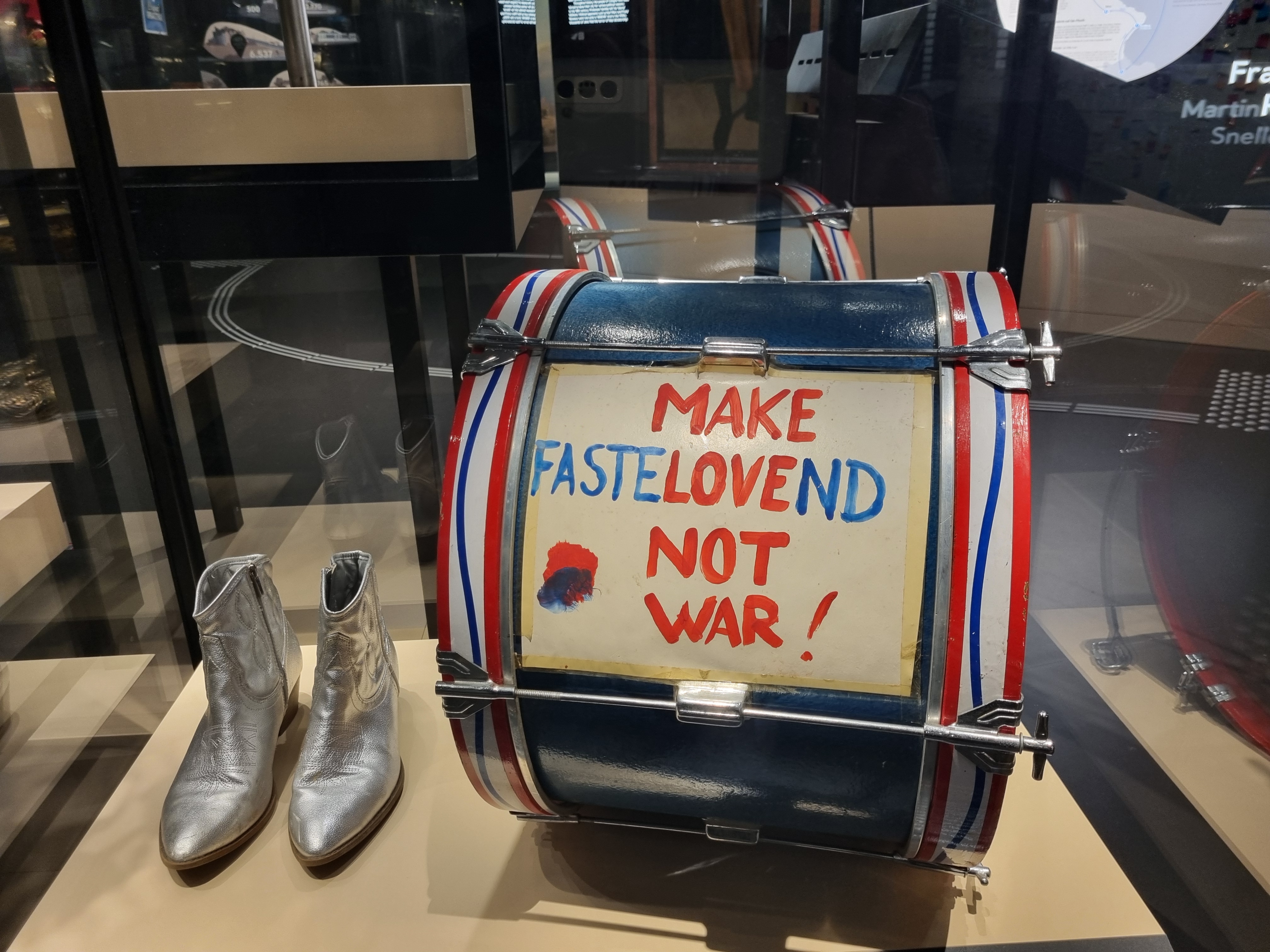 Exponate der Friedensdemo, die 2022 statt des Rosenmontagszugs durch Köln zog. Foto: Lars Germann
